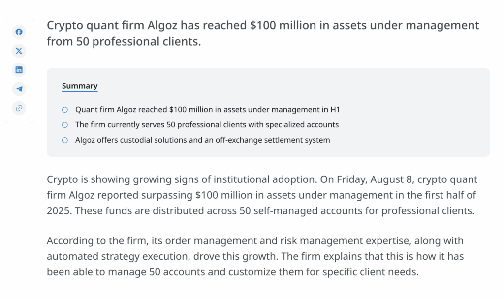 Click this link to read the full story – https://crypto.news/quant-firm-algoz-scales-past-100m-in-crypto-aum-with-50-institutional-accounts/